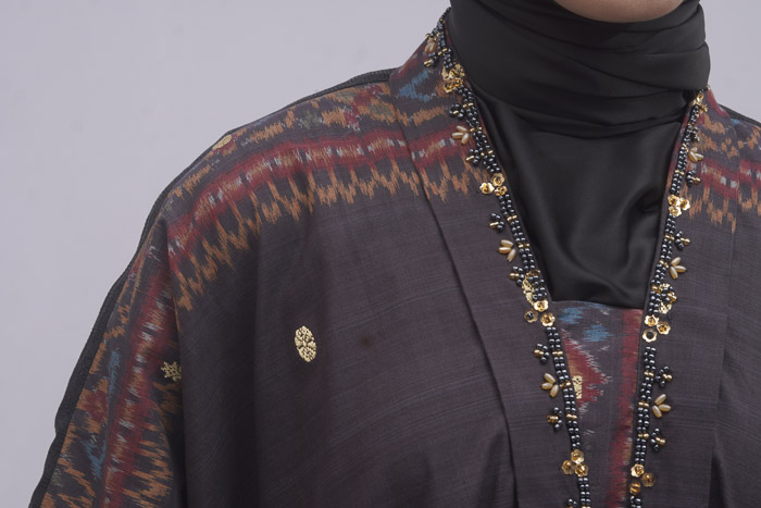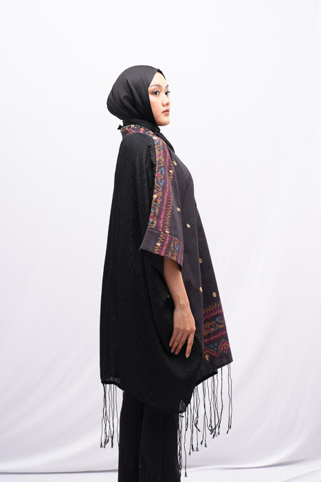 ATASAN TUNIK KARTINI BLONGSONG LIMARAN HITAM BENANG EMAS KOMBINASI VISCOS