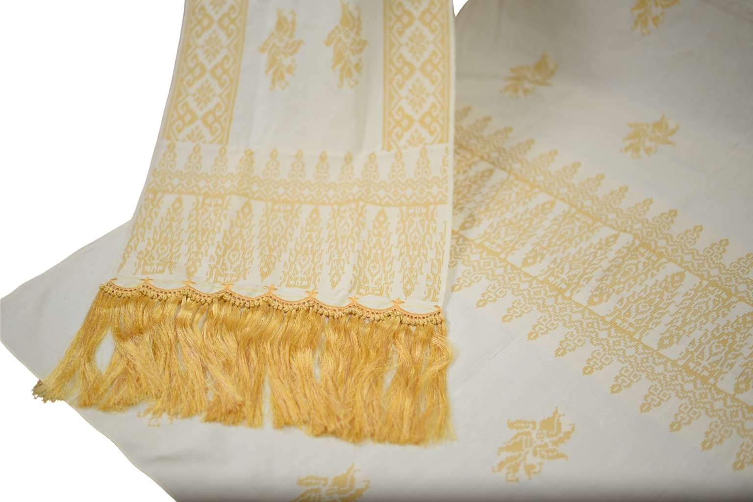Pattern Meaning: Filosofi : Memakai tenunan tajuk puteri, Adat tegak lembaga berdiri, Niat sampai murahlah rezeki, Tuahnya menjadi paying negeri