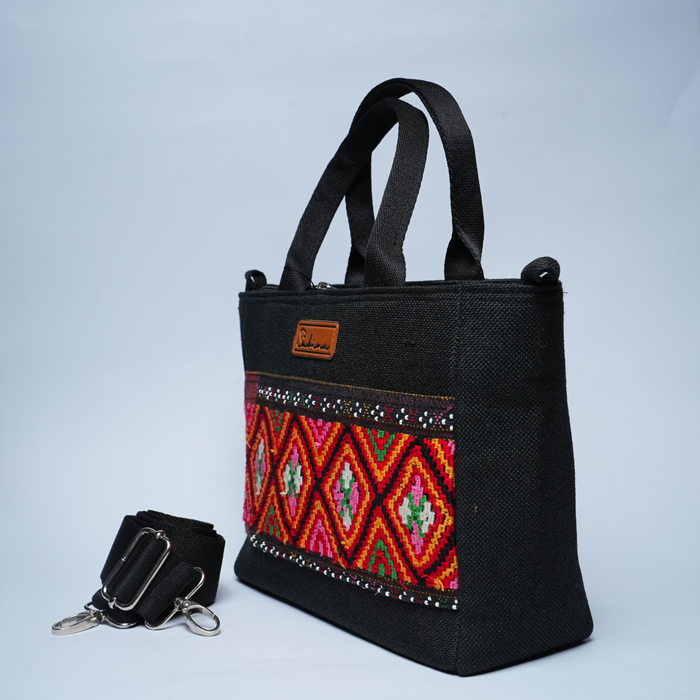 This canvas bag is stitched with a blend of Mandailing ulos fabric, creating a unique look that combines traditional and modern elements. The selected ulos adds a distinct ethnic touch, while the canvas base ensures durability and practicality for everyday use.