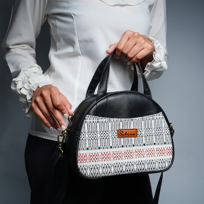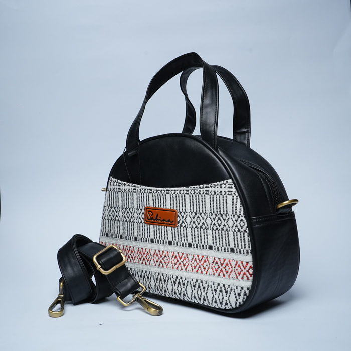 An elegant bag made from a blend of traditional Indonesian ulos fabric and premium synthetic leather. A modern design with a cultural touch, perfect for any stylish occasion.