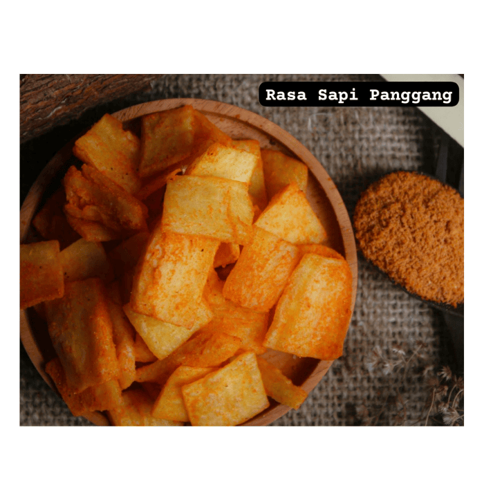 Cassava chips with bite size (small pieces2) so easy to consume, there are various flavors packaged with pouch packaging so practical to carry for snacks on the go or when relaxing.