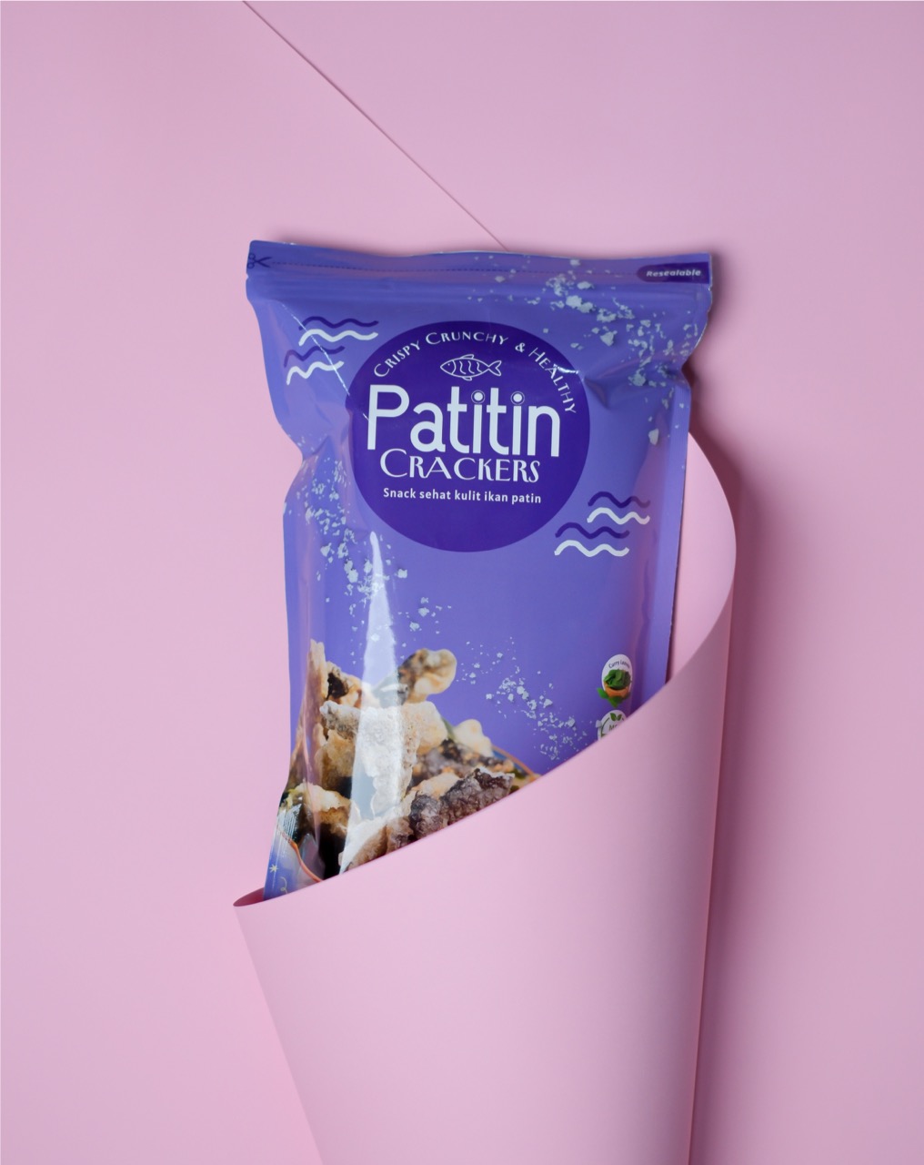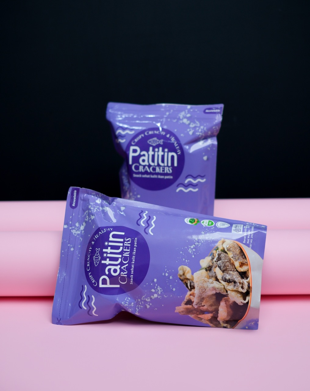 PATITIN is a healthy snack made from patin fish skin, naturally packed with protein and essential nutrients such as Omega-3, Vitamin D, Calcium, Phosphorus, Selenium, and a high dose of collagen — all beneficial for your well-being.