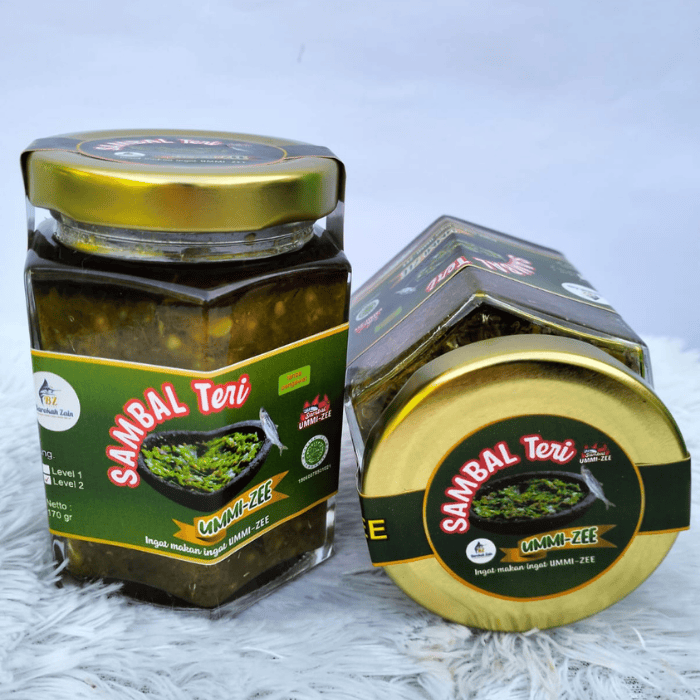Sambal teri Ummi-Zee It is a sambal that is processed with quality anchovies that are fried crispy which are mixed with chili and traditional Indonesian spices to produce a taste that fits on the tongue. It is suitable to accompany mealtime can also be cocol with other foods. At room temperature it can stand for months. So it is safe if you make it sent-sent both domestically and abroad. After opening it should be stored in the refrigerator because it doesn't use preservatives. Packed with glass bottles .