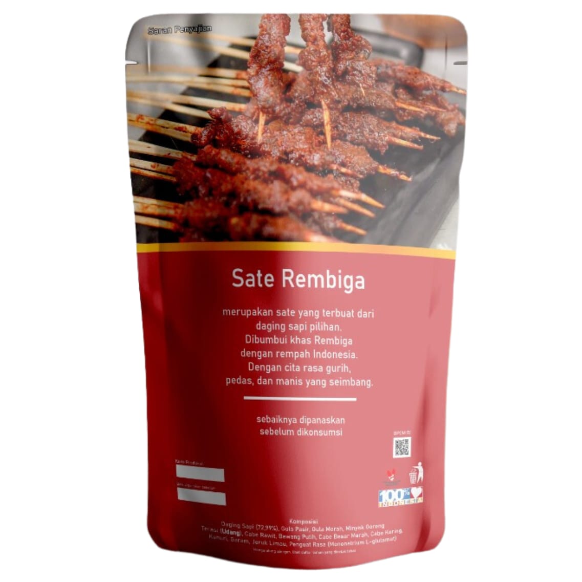 Sate Rembiga Goyang Lidah is a culinary UMKM from Lombok that presents the authentic taste of family heritage through ready-to-eat Sate Rembiga. Based on a hereditary recipe from Hj. Nafisah, we package the deliciousness of Lombok in the form of a non-frozen pouch that is practical, hygienic, and lasts up to 10 months at room temperature—without preservatives. We combine traditional values and modern innovation in every production process, with food safety standards (HACCP-ready) to reach national and international markets. With selected raw materials, original spices, and special grilling techniques, Sate Rembiga Goyang Lidah presents a spicy, sweet, and savory taste sensation that will rock the tongue of anyone who tries it.