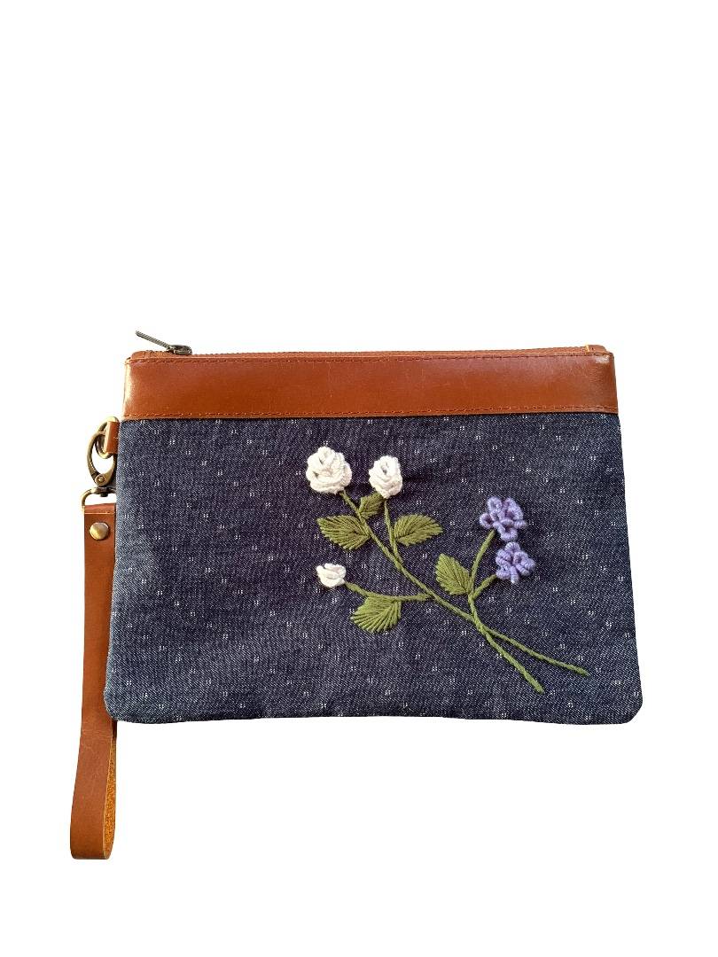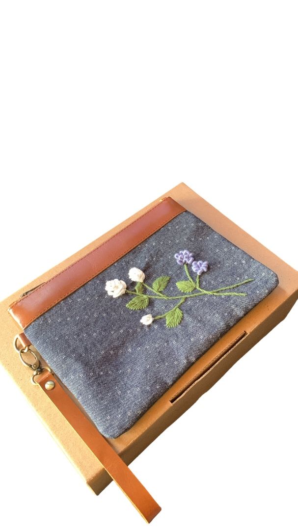 Jenna Pouch with Embroidery, Leather and Canvas Combination is a charming pouch that beautifully blends traditional elegance with modern function. Adorned with distinctive hand embroidery, it combines premium leather and sturdy canvas materials to create a unique, character-filled look. The practical and versatile design makes it ideal for storing makeup, stationery, or other small essentials. Compact and easy to carry, this Jenna Pouch is perfect for those who love ethnic-modern style with functionality.