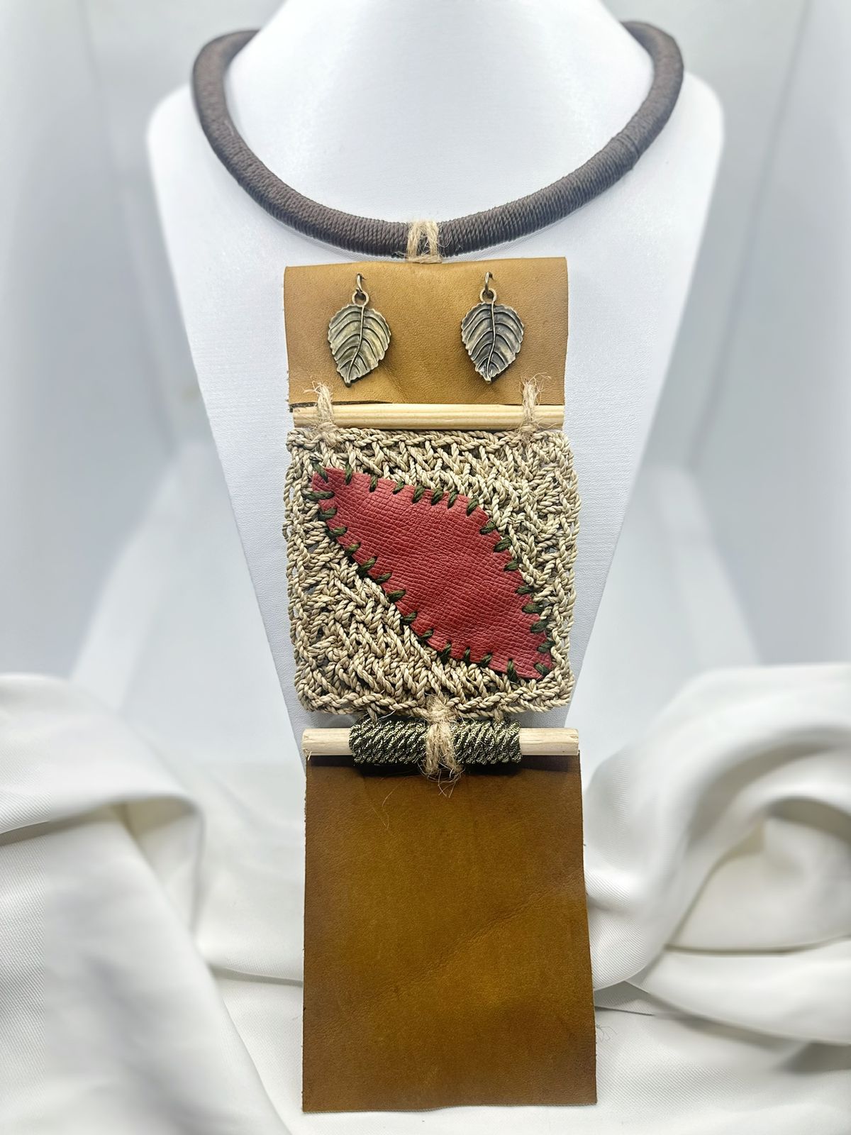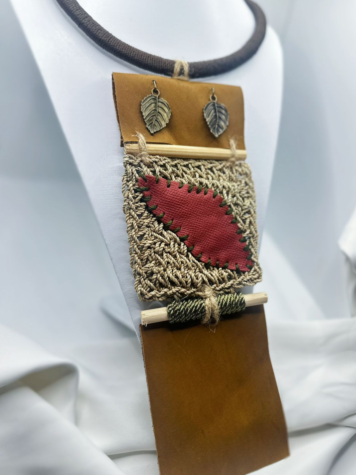 Accented with natural leather, wooden details, and jute rope, this piece brings together earthy materials in a harmonious, rustic composition. Each element is carefully handcrafted, making this necklace not just an accessory, but a reflection of a lifestyle rooted in nature and cultural heritage.