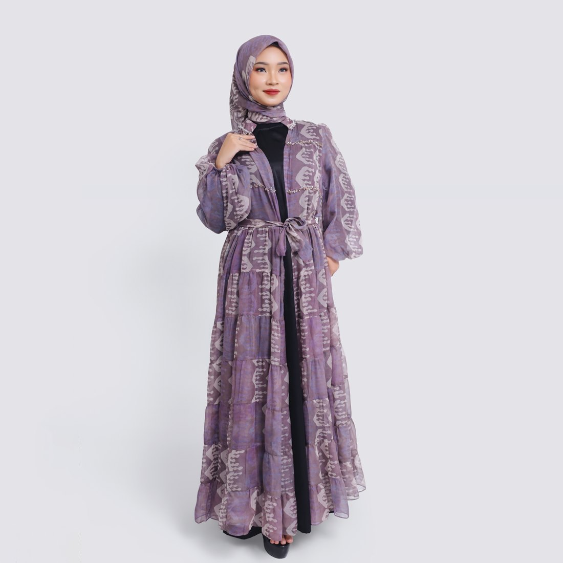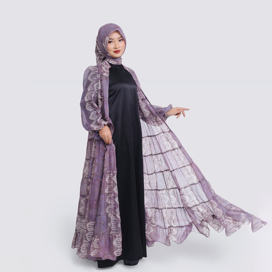 Set Wide Outer & Hijab Batik Purple