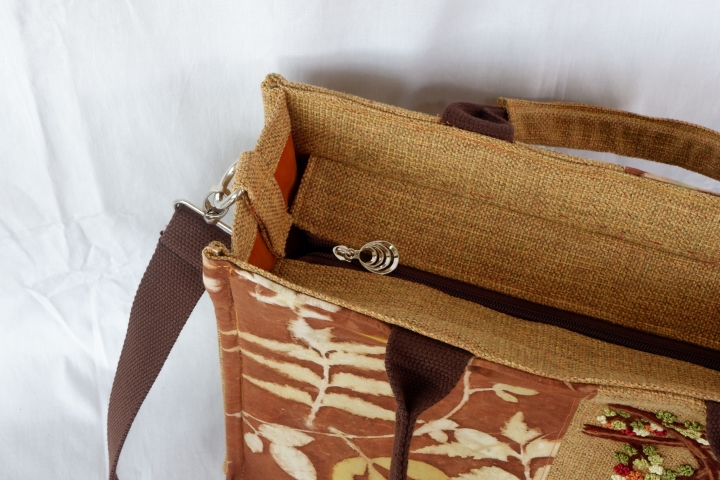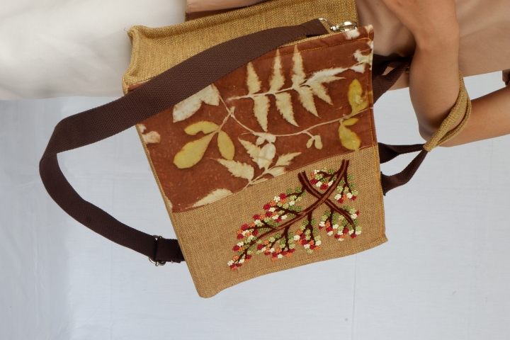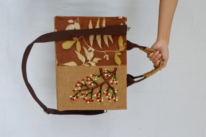 Material Type: Bahan: Kain serat motif karung: kuat dan bertekstur unik Kain ecoprint: ramah lingkungan dengan motif alami Webbing canvas katun: kokoh dan nyaman