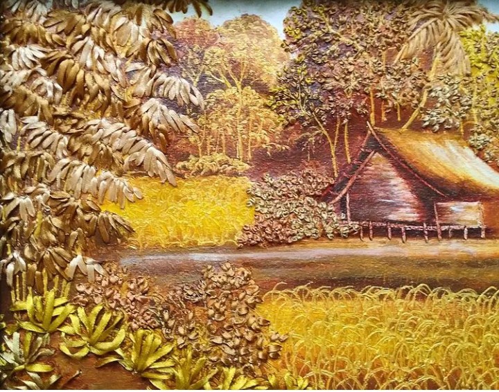 Perpaduan lukisan cat akrilik dan sulaman dikain kanvas
