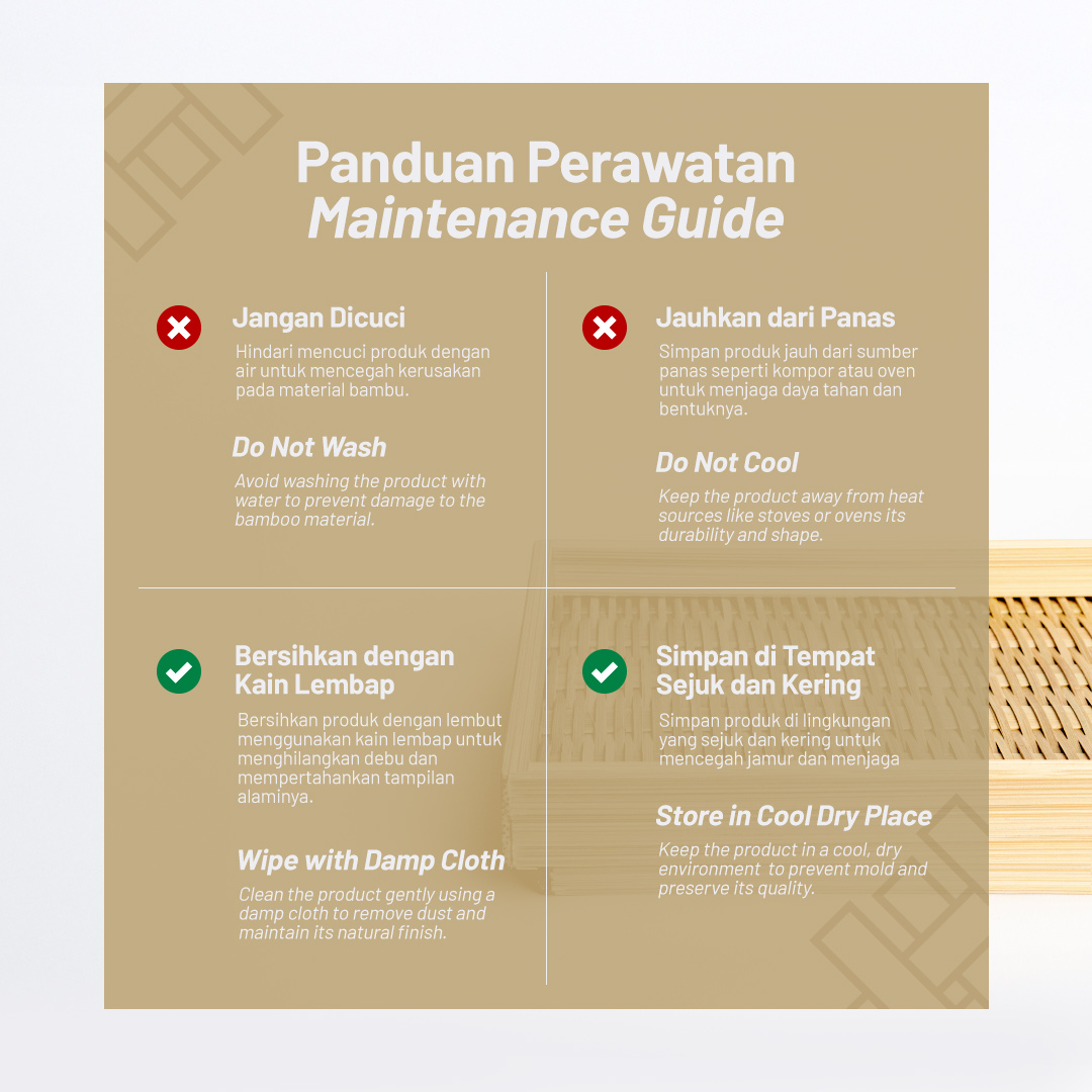 Studio Dapur crafts premium bamboo products for households, particularly for kitchens and dining tables. Our products include trays, baskets, placemats, and food covers with modern designs and traditional bamboo weaving. We use high-quality local bamboo from Tasikmalaya, West Java. Our flagship collections include the Wijaya Kusuma and Frangipani series, featuring curved bamboo and wooden disc combinations. These products enrich modern homes with natural and elegant aesthetics.