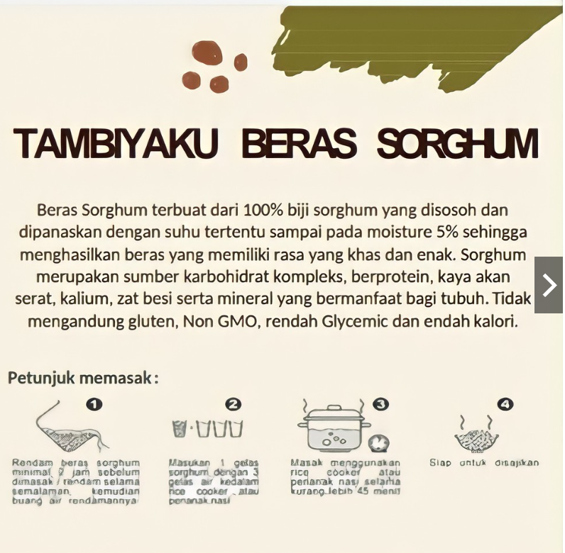 Sorghum rice is made from the sorghum plant, which is a versatile plant. The characteristics of this plant are environmental hardiness, minimal fertilization and resistance to pests and diseases. Sorghum rice is in line with Quinoa, Millet and Syirataki rice, but at a relatively cheaper price and is a local Indonesian product.