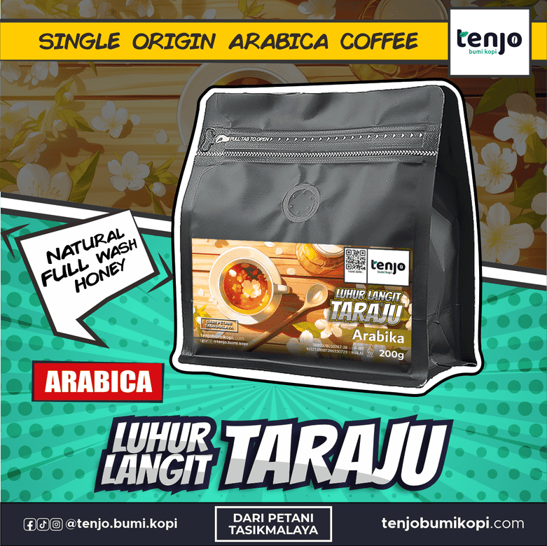 Tenjo Bumi Kopi was founded in 2018 in Tasikmalaya Regency by Rahmat "Mamet" Nugraha. Starting from revitalizing abandoned coffee plantations since 2012, they now partner with local farmers from estates such as Karaha, Galunggung, Cakrabuana, Taraju, and others. Delivering high-quality coffee through full upstream-to-downstream quality control—from modern processing techniques (natural to full-wash) to packaging—they currently produce about 200–300 kg per month. Their coffee is distributed across Indonesia and exported abroad, sold via e-commerce, local cafés, and digital payment systems.
