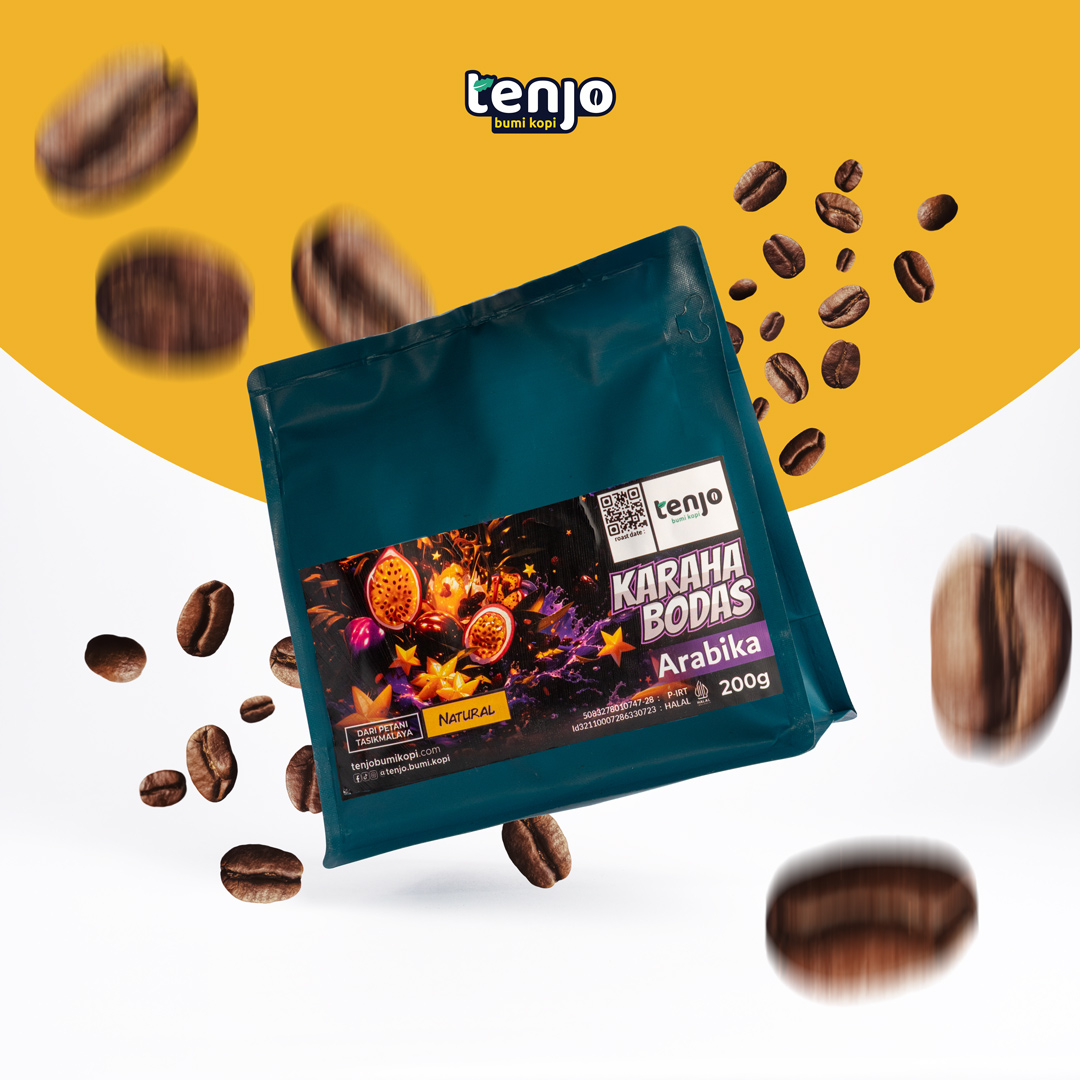 Tenjo Bumi Kopi was founded in 2018 in Tasikmalaya Regency by Rahmat "Mamet" Nugraha. Starting from revitalizing abandoned coffee plantations since 2012, they now partner with local farmers from estates such as Karaha, Galunggung, Cakrabuana, Taraju, and others. Delivering high-quality coffee through full upstream-to-downstream quality control—from modern processing techniques (natural to full-wash) to packaging—they currently produce about 200–300 kg per month. Their coffee is distributed across Indonesia and exported abroad, sold via e-commerce, local cafés, and digital payment systems.