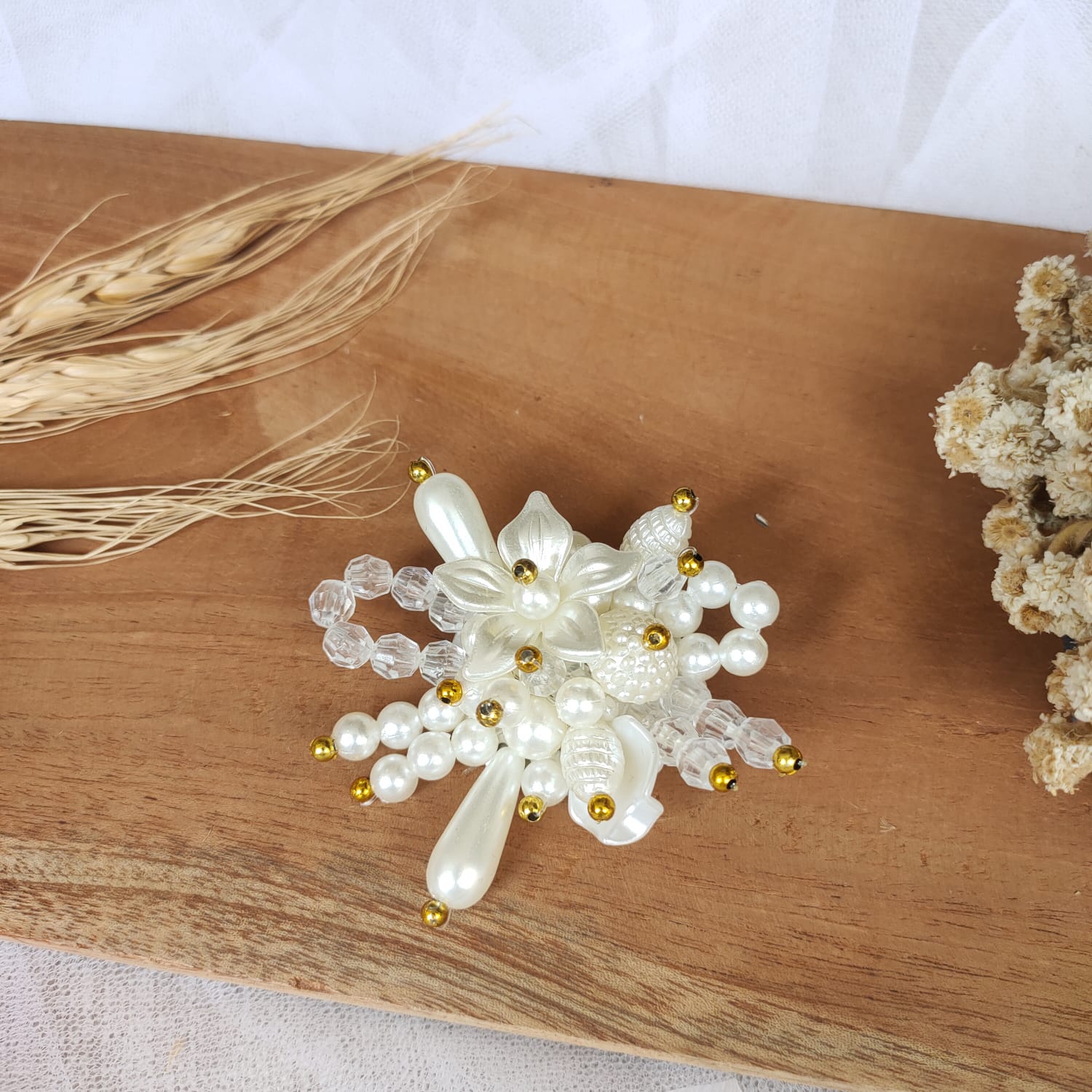 Bros Bunga Mutiara Sintetis – Aksesori Hijab & Kebaya Elegan