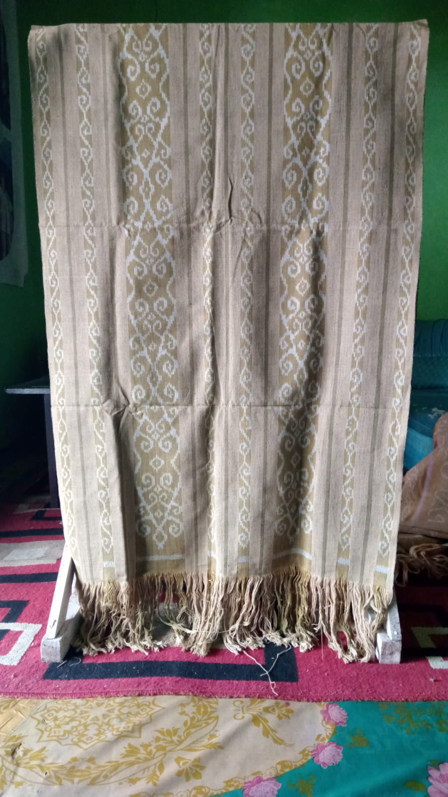 I first started weaving, in Tarakan City in 2006. At first I wove only for my own use with motifs from the area where I was born (Flores, Maumere). However, as time went by, the local government provided assistance for weaving with typical Tarakan motifs. In 2010, Mrs. Solikhin and I went to Surabaya to conduct batik training by coloring using Napthol. And the method of dyeing weaving is also the same as batik at that time. After that, I started starting my career and received assistance from Dekranasda in the form of various manual weaving tools, various dyes and good materials. Then I started making typical Tarakan motifs so many people liked them.