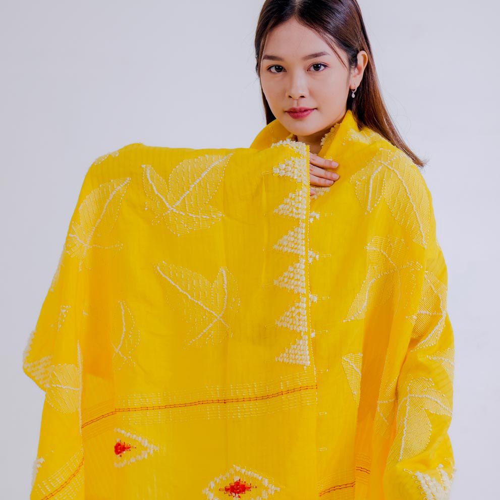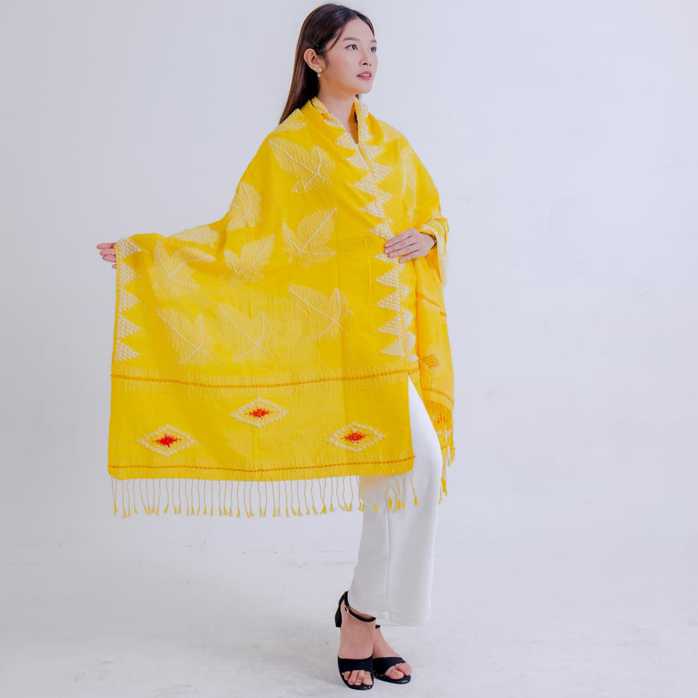 Embroidery Silk Shawl with Mulberry Leaf Motif
