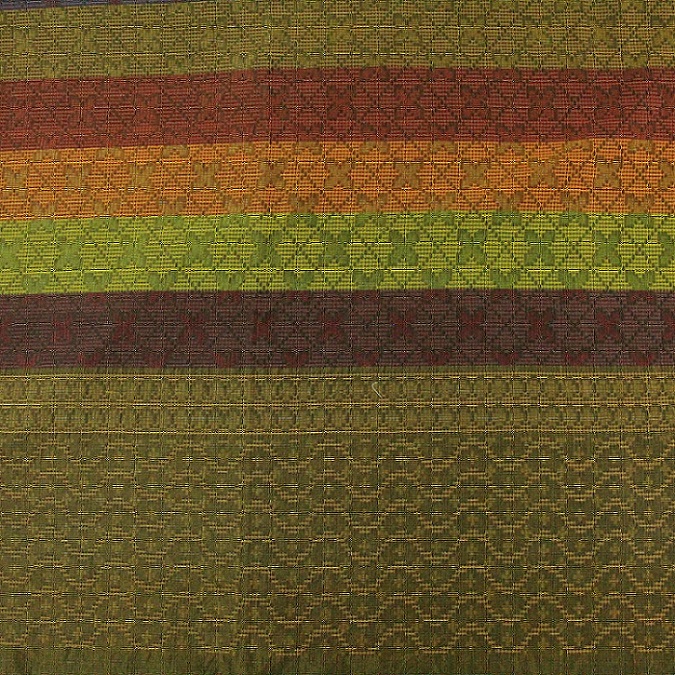 Pattern Meaning: Motif selendang tenunan ini terinspirasi dari keindahan bunga asoka yang berwarna-warni melambangkan harapan untuk mencapai kedamaian jiwa, terhindar dari kesedihan dan derita, yang akan menciptakan kebahagiaan dalam setiap hati manusia.