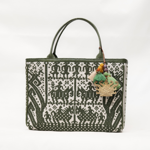 Large Tote Bag Tenun Kapal - Olive