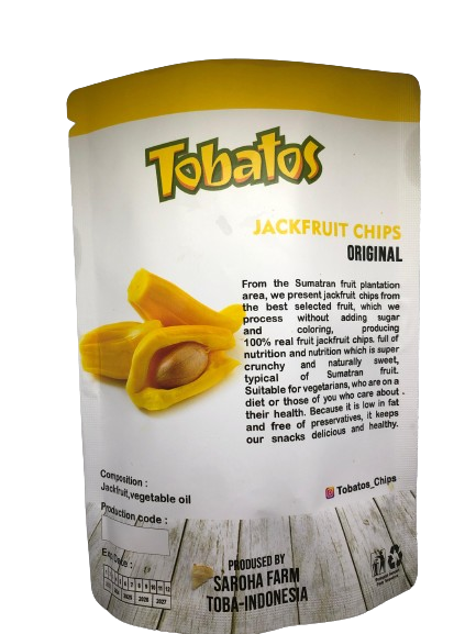 Saroha Farm is one of the MSME champions in Toba Regency with a wide variety of products, one of which is Tobatos chips. Tobatos are chips made from processed potatoes with 4 flavors, namely Original, Andaliman, Salt Cheese, and Spicy, priced at IDR 15,000 per piece. Tobatos innovates by presenting a new variant that promotes healthy food for healthy life, namely Tobatos Fruit Mix