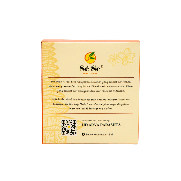 UD Arya Paramita was founded in 2011. We have produced "Jamu" or Indonesian Herbal Drink with brand "SEHAT SEGAR" but then changed its name to "SE SE" since late 2020 according the Intellectual Property Law in Indonesia. We produce herbal drink in liquid ones, instant herbal drink, and candy. With no preservatives and no artificial sweetener, we use natural spices from local farmers. Our packaging is easy to take everywhere when you're traveling. Nowadays, "Se Se" has been sold even outside Bali, even in worldwide. Our motto is "Jamu is delicious, Jamu is fun. Let's drink Jamu everyday." We want to make Jamu "Se Se" being known in global worldwide.