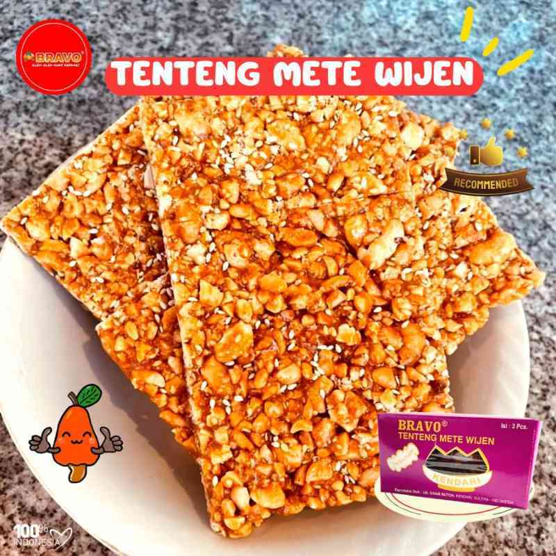 Bravo Tenteng Mete is a crunchy sweet snack typical of Eastern Indonesia that combines the deliciousness of selected cashew nuts with deliciously delicious sugar caramel. Known as a typical Kendari souvenir, this product presents a "Sweet & Crunchy" sensation that pampers the tongue with every bite.