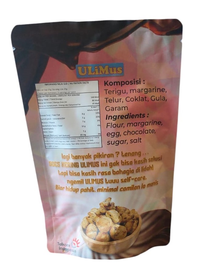 Load on your mind? Don't worry, ULiMus Chocolate Craquelin Choux can't provide a solution, but it can give you pleasure to your taste buds! ULiMus Snacks are your self-care. Even if life's bitter, at least your snacks are sweet. Halal and P-IRT Certified.