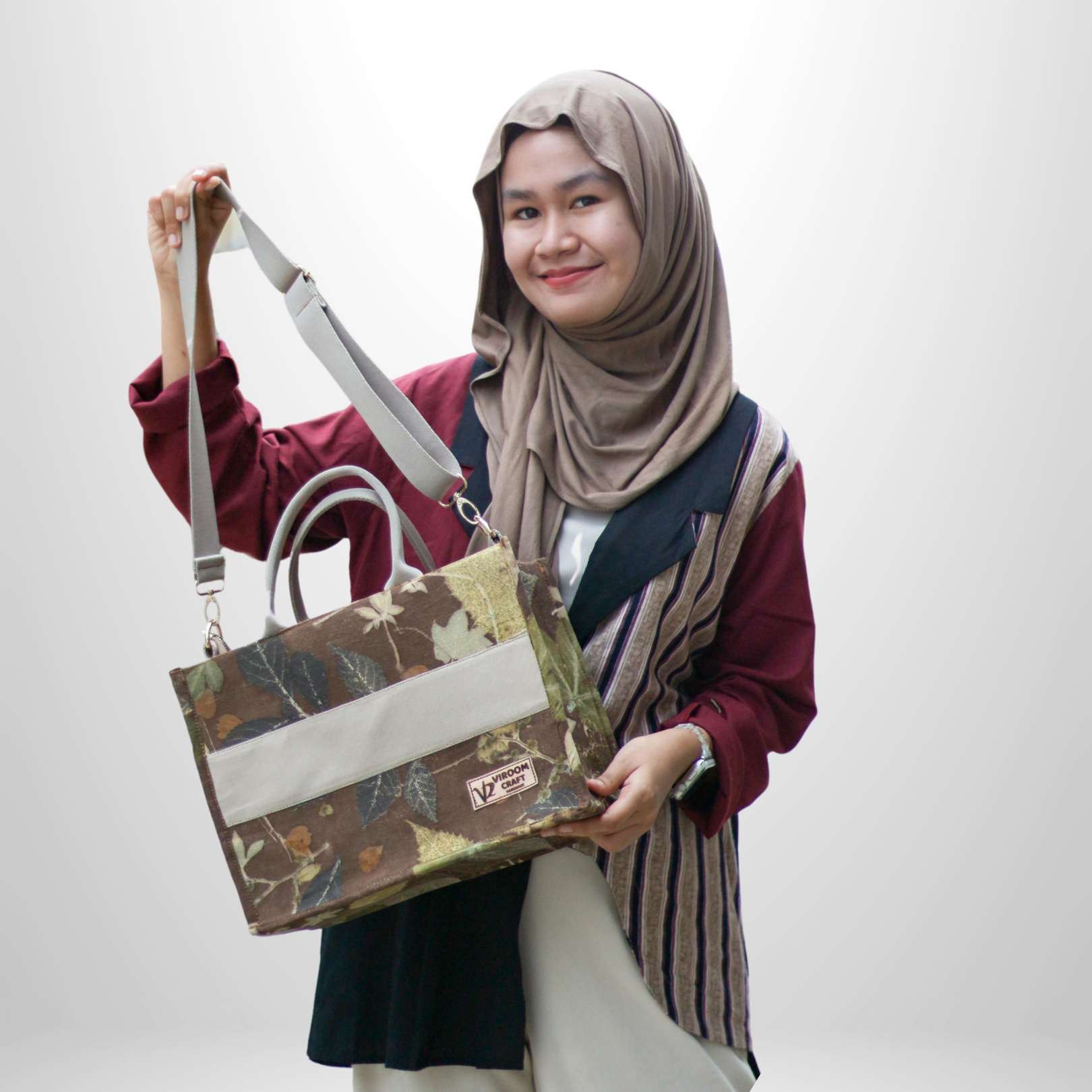 Viroom was established in 2019 and has been running for nearly 5 years. Viroom.craft originated from the owner's passion and talent for painting. It started with painting on various recycled items such as clothes, shoes, bags, hats, and jute sacks. The positive response encouraged them to produce and sew their own bags, as well as explore embroidery, knitting, and other handicrafts. In 2020, they created unique painted masks that gained significant popularity. The strengths of Viroom.craft lie in its quality and materials. They also produce painted bags using jute sacks with motifs inspired by the Rumah Gadang Minangkabau. Viroom.craft empowers local youth through knitting training and collaborates with mothers to create ecoprint fabric.