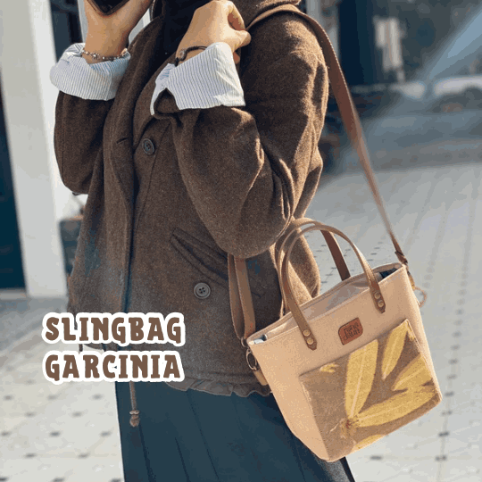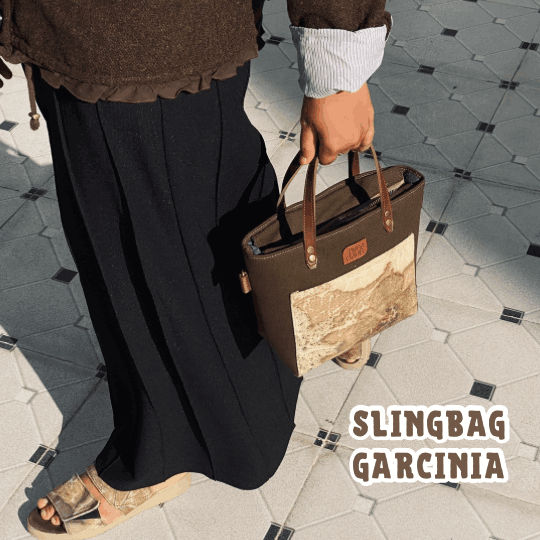Look stylish with the Garcinia Slingbag made from premium Ecoprint canvas.