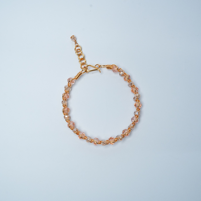 Inspired by the graceful petals of tulip flowers, this bracelet is crafted with twisted copper wire and sparkling crystals. Each detail reflects a sweet and feminine charm, making it a perfect accessory to complement a soft, elegant, and radiant everyday look.