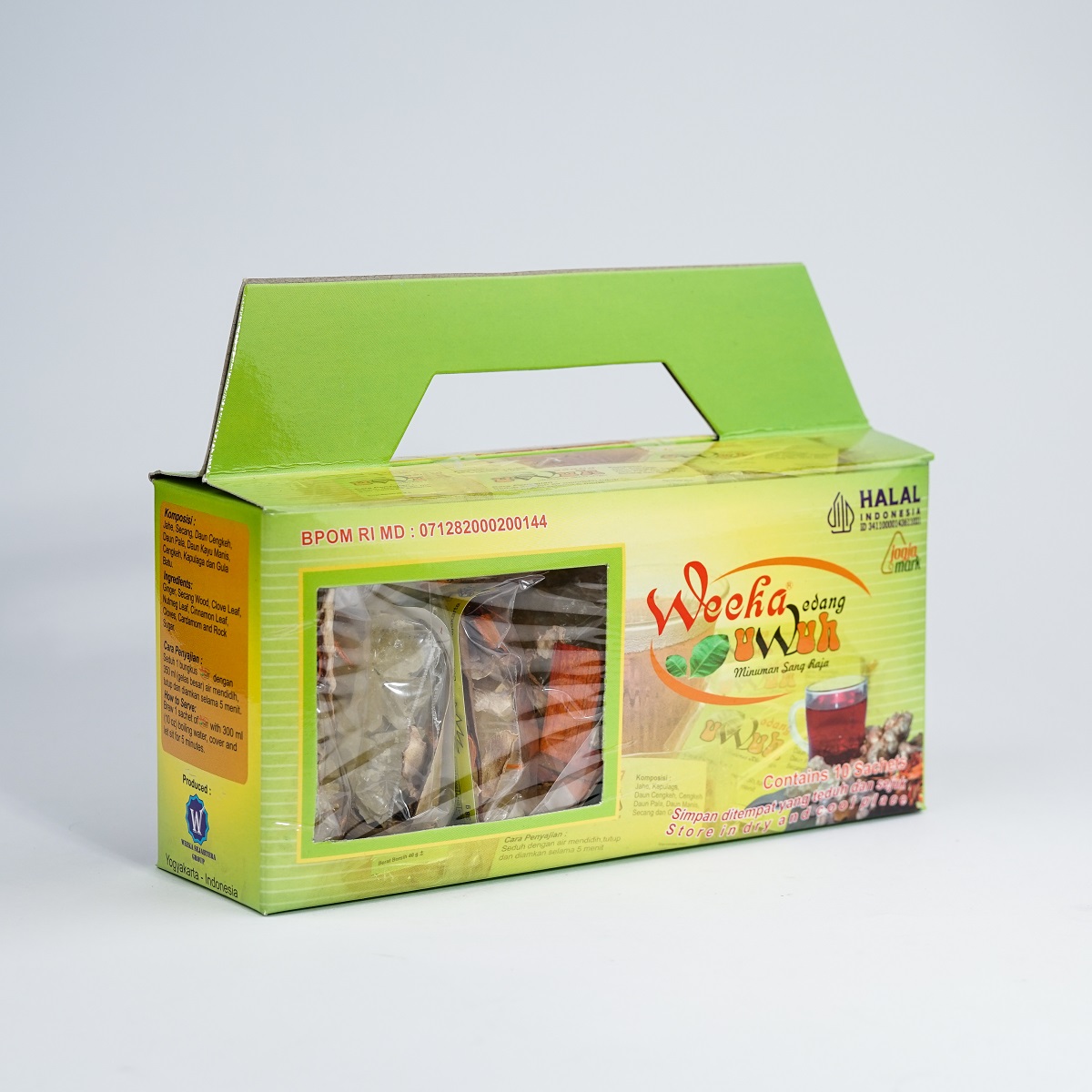 Ingredients: Jahe, Kayu Secang, Daun Kayu Manis, Daun Cengkeh, Daun Pala, Cengkeh dan Kapulaga
