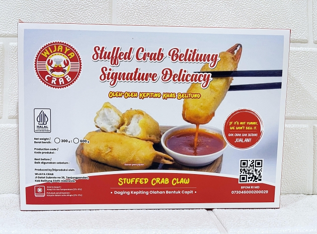 Founded in 2013, Wijaya Crab began with a passion to introduce Belitung’s authentic cuisine—stuffed crab—to a wider audience. Inspired by childhood memories and love for the island, we offer traditional seafood-based delicacies in practical frozen form. Our products use premium ingredients, are free from artificial coloring and preservatives, and some are even gluten-free. Known for our signature lime sambal, we also innovate with items like Crab Sambal and Satam Pempek. We believe Belitung will be recognized not only for its tin and scenic beaches, but also for its unique and delicious culinary heritage.