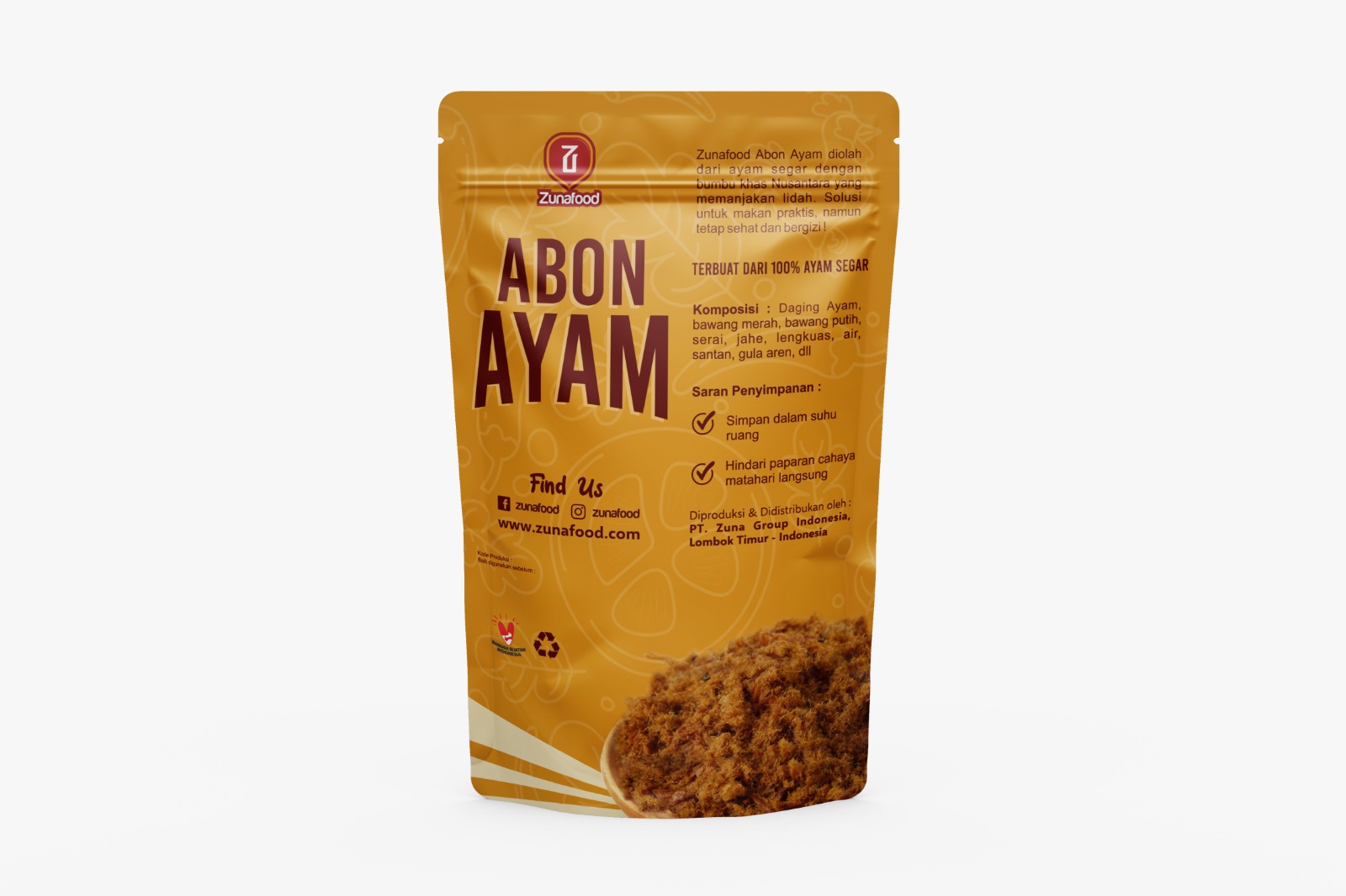 Zunafood is a culinary brand under PT Zuna Group Indonesia which was established in 2020. Zunafood processes the natural products of the island of Lombok into packaged food that can be distributed anywhere so that everyone can get to know and enjoy the natural food of Lombok. Zunafood is committed to not only providing food with quality natural products, but also healthy by REFUSING food preservatives & MSG in every recipe. So that everyone can enjoy zunafood culinary products with a sense of security and comfort. Zunafood products that have been circulating in the market include various typical Lombok Sambals, Tuna Fish Floss, Skipjack Fish Floss, Chicken Floss, Beef Floss and Ready-to-Use Roasted Terasi.
