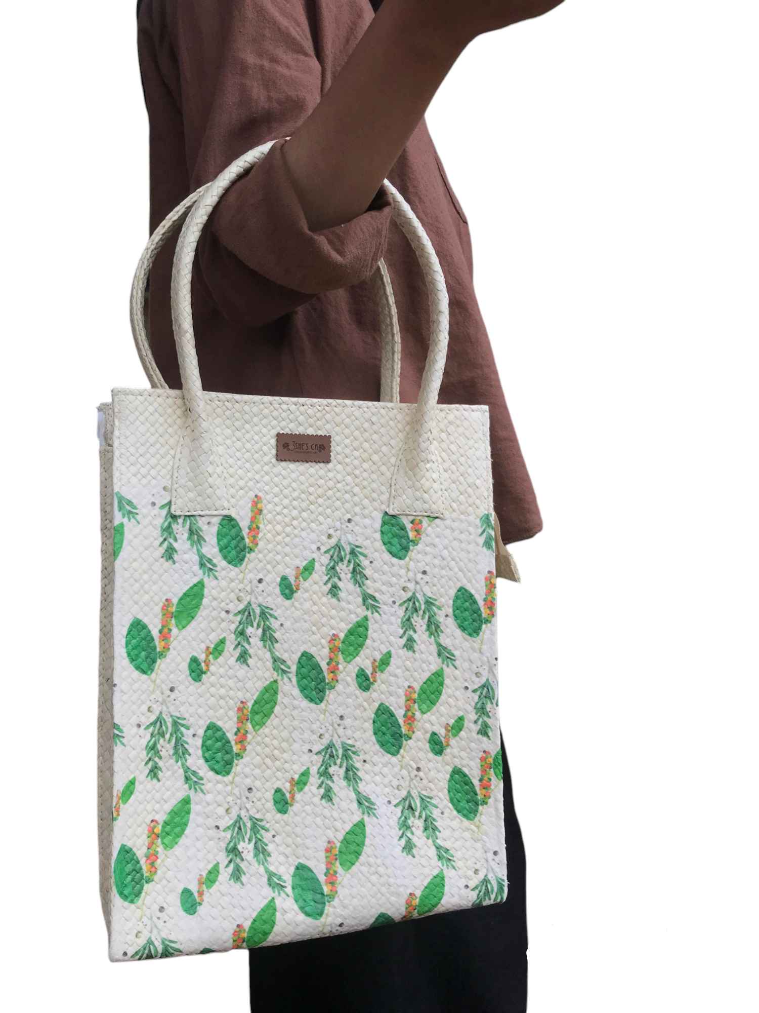 Tas ini merupakan hasil dari kreasi decoupage dengan keunikan di motifnya yang berasal dari tissue bermotif di atas media anyaman pandan. Inovasi kami di tas ini adalah menggunakan tissue dengan motif kearifan lokal khas Bangka Belitung Lada Variasi. Tas ini memiliki ukuran yang tinggi dengan dilengkapi resleting. Stok tersedia dan bisa dipesan dalam jumlah banyak dengan sistem PO. Serta bisa juga costum untuk motifnya.