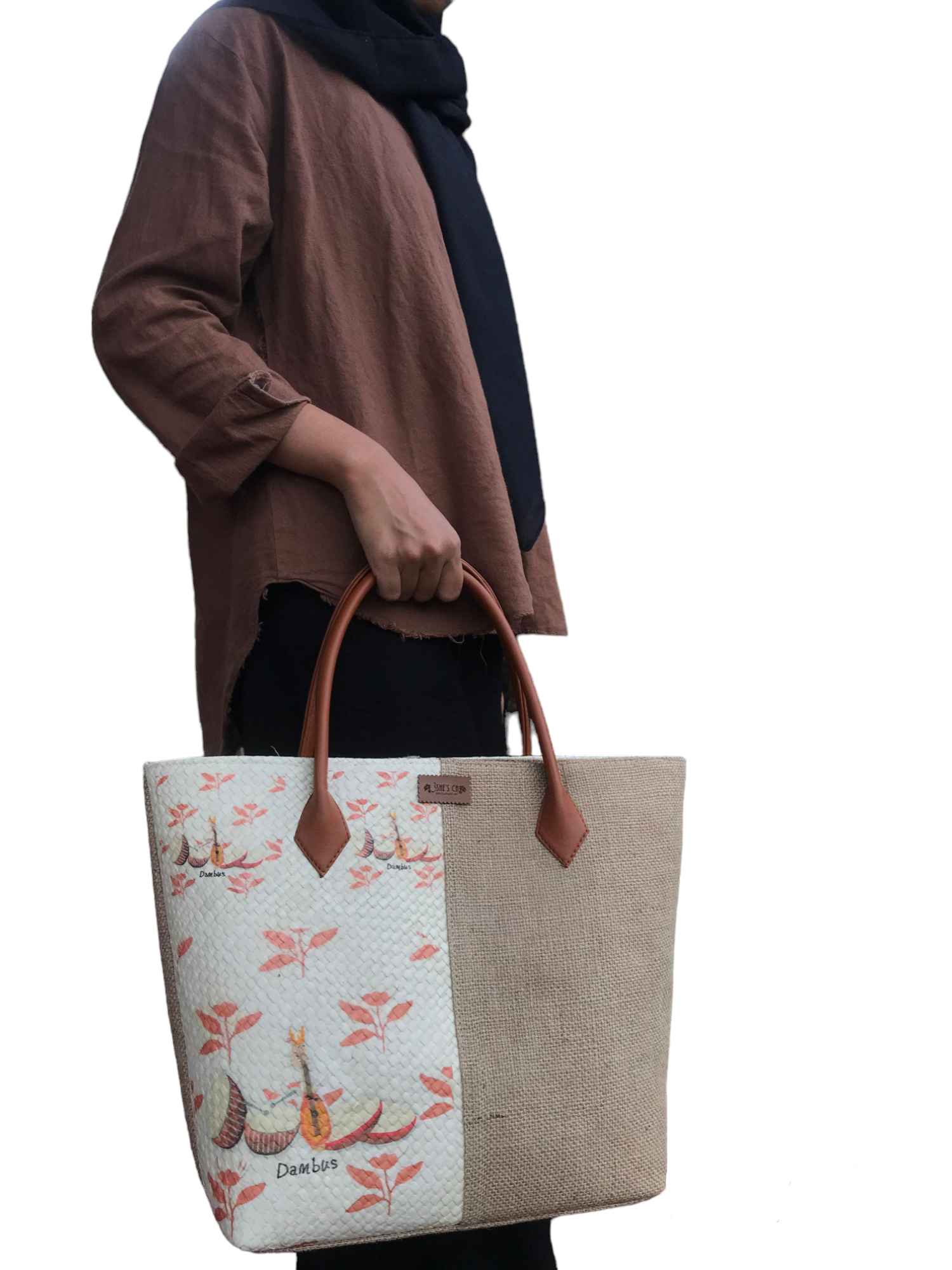 Tas ini merupakan hasil dari kreasi decoupage dengan keunikan di motifnya yang berasal dari tissue bermotif di atas media anyaman pandan dengan kombinasi bahan goni. Inovasi kami di tas ini adalah menggunakan tissue dengan motif kearifan local khas Bangka Belitung yaitu Dambusi Variasi. Tas ini memiliki ukuran yang besar dengan dilengkapi resleting dan tali Panjang. Stok tersedia dan bisa dipesan dalam jumlah banyak dengan sistem PO. Serta bisa juga costum untuk motifnya.