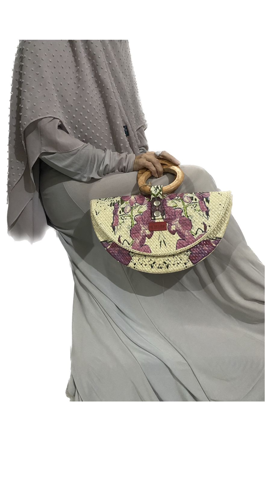 Clutch ini merupakan hasil dari kreasi decoupage dengan keunikan di motifnya yang berasal dari tissue bermotif di atas media anyaman pandan dengan handle kayu. Inovasi kami di clutch ini adalah dengan menggunakan tissue dengan motif kearifan lokal khas Bangka Belitung yaitu Bunga Anggrek Pensil. Clutch ini memiliki ukuran yang medium, stok tersedia dan bisa dipesan dalam jumlah banyak dengan sistem PO. Serta bisa juga costum motif nya.