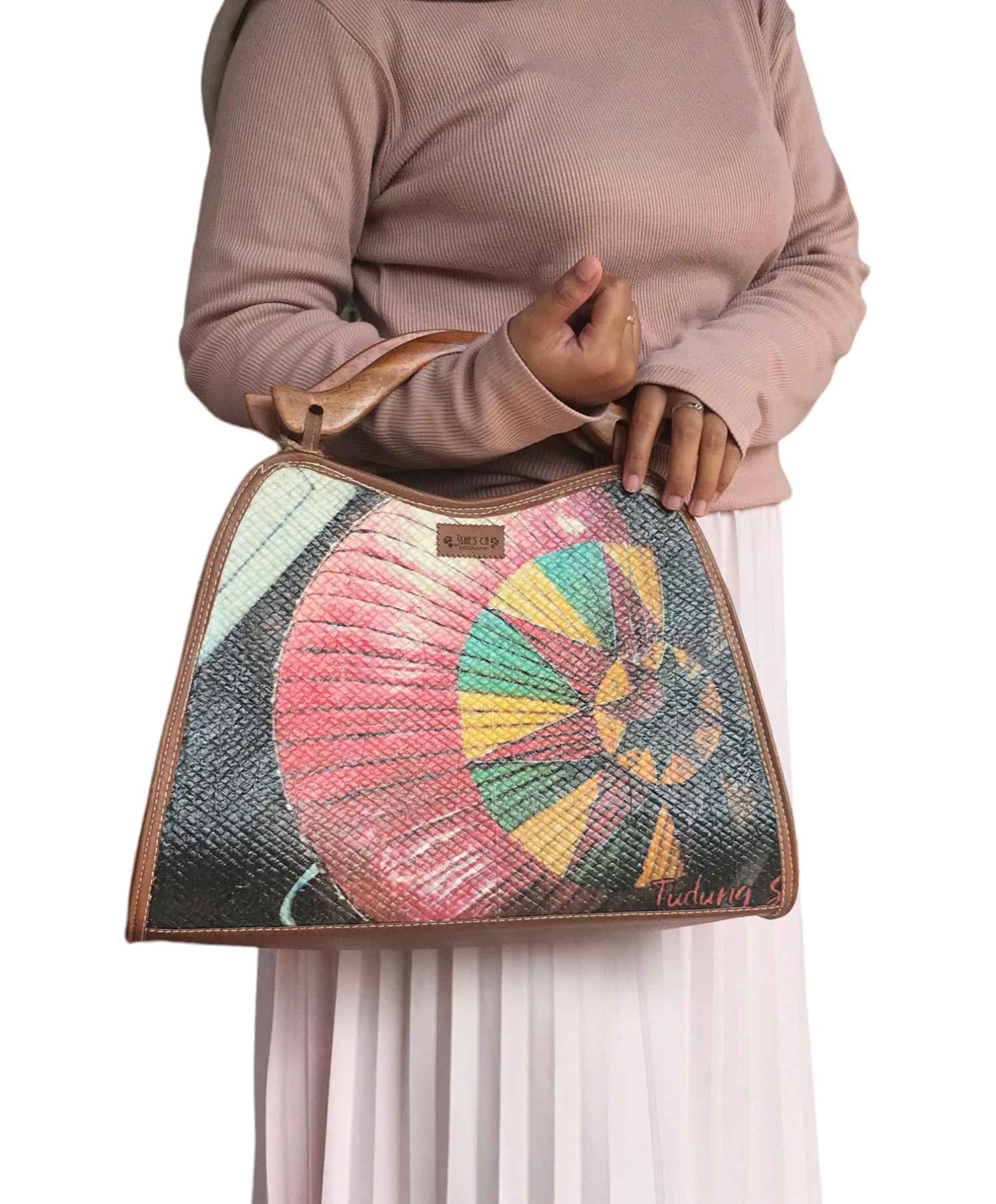 Tas Tangan Handle Kayu Kumis Decoupage Motif Tudung Saji