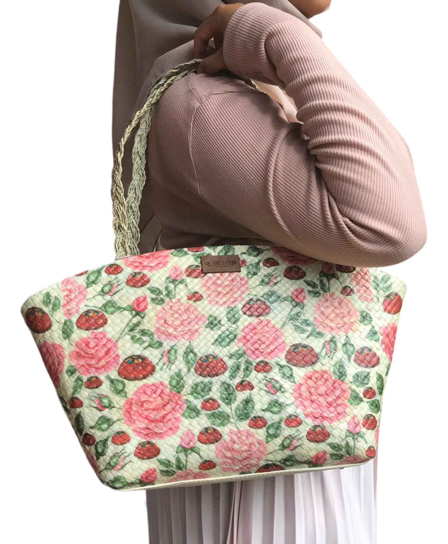 Tas Tangan Decoupage Sampan Tali Kepang Motif Tudung Saji