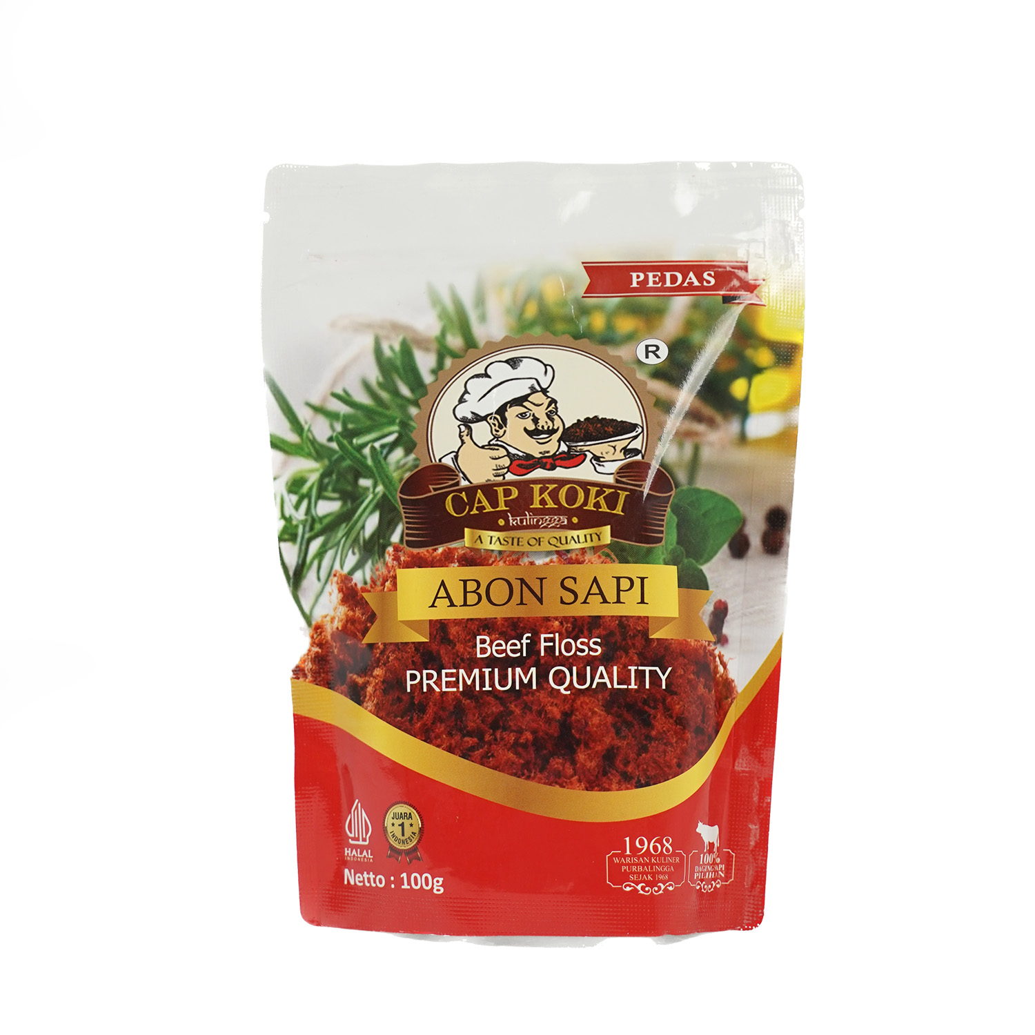 Abon Cap Koki adalah olahan daging sapi siap saji yang berkualitas premium. Berbeda dengan produk abon lainnya, abon sapi cap Koki memiliki tekstur serat daging yang masih utuh sehingga sangat renyah serta perpaduan rasa gurih dan manis sangat terasa di lidah. Sangat cocok dikonsumsi oleh segala usia terutama keluarga modern, traveller serta cocok sebagai oleh-oleh. Terdapat dua varian rasa yaitu original dan pedas