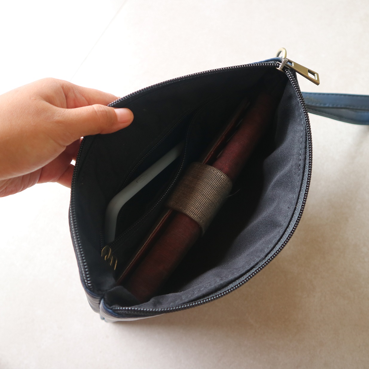 Terbuat dari bahan tenun ikat, kulit sintetis premium, inner katun, aksesoris black nikel, resleting.