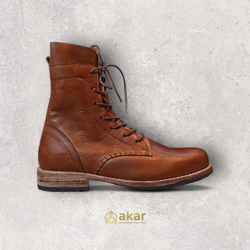 Sole kulit nabati bertumpuk dan konstruksi Veldtschoen yang solid menjadikan Kakara Boots partner andalan untuk melangkah jauh—secara harfiah maupun simbolis. Dirancang dan dirakit secara handmade di workshop Akar NFYR, setiap pasangnya adalah karya yang menghargai akar dan proses.