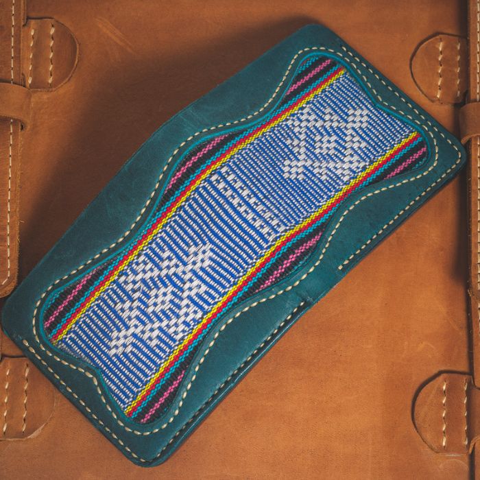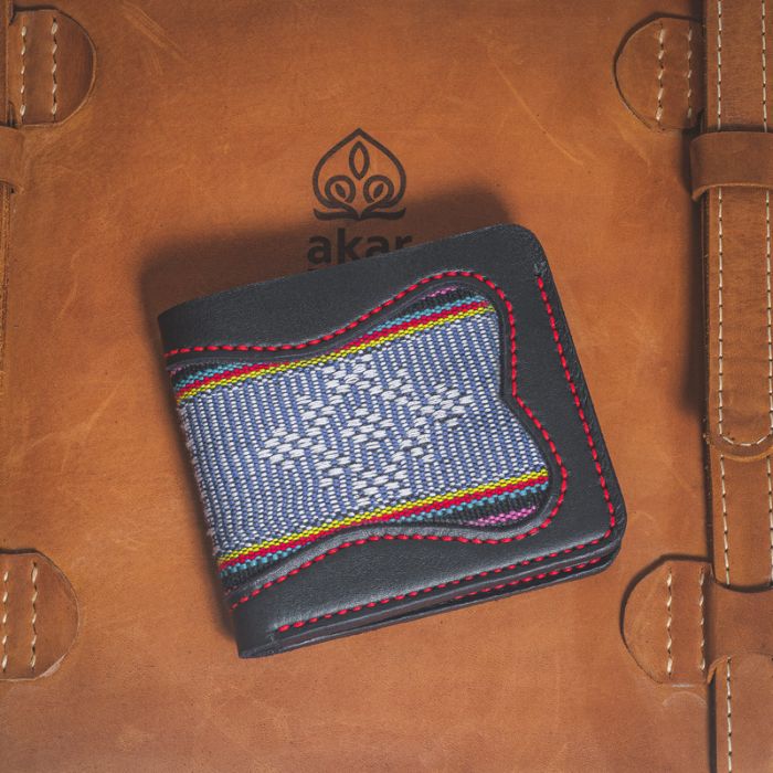Skaya Tenun Wallet dibuat dari bahan kulit sisa produksi sepatu Akar NFYR, dipadukan dengan kain tenun Indonesia menjadikan produk dompet ini trendy dan unik.