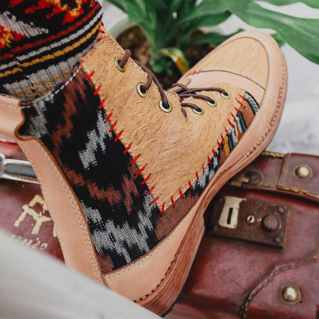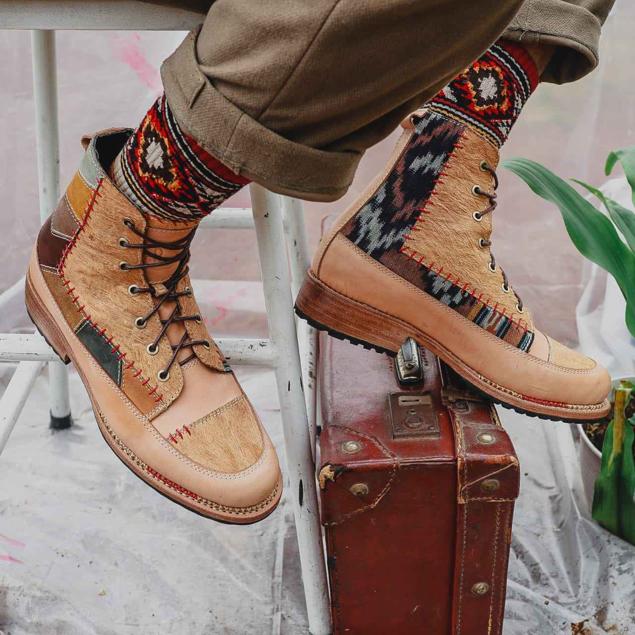 Bhinneka Boots adalah sepatu yang sangat unik karena terbuat dari serat kayu atau kulit kayu, di mana bahan ini merupakan bahan pakaian yang digunakan oleh masyarakat Indonesia pada zaman dahulu. Selain itu, sepatu boots ini juga menggunakan kain tenun khas Indonesia dan kulit nabati sebagai bahan utamanya.