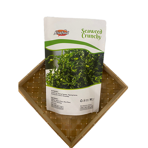Keripik Rumput Laut Alsafood (Seaweed Crunchy) adalah camilan sehat berbahan dasar rumput laut pilihan yang diolah secara modern untuk menghasilkan kerenyahan sempurna dan rasa gurih alami khas laut. Produk ini mengangkat kekayaan hasil laut Indonesia menjadi camilan inovatif yang tidak hanya lezat, tetapi juga kaya akan serat, mineral, dan antioksidan alami.