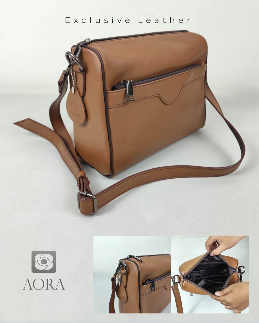 Tas slingbag AORA adalah tas selempang wanita yang berbahan kulit asli.