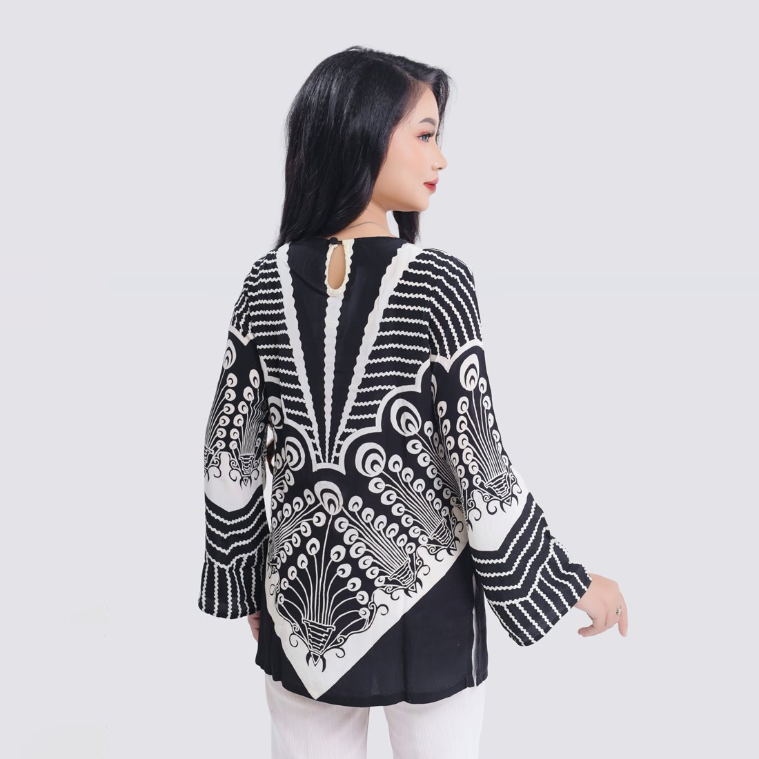 Bluse Batik Hitam Putih Bakara