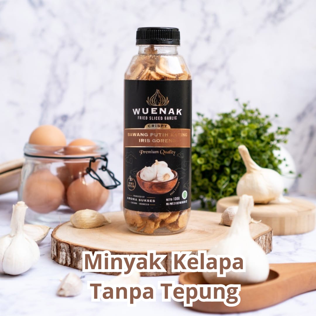 Dimulai pada tahun 2017, selama ini kami selalu berusaha menjaga kualitas produk kami sehingga hampir seluruh pelanggan kami suka dengan Bawang Goreng WUENAK. Produk telah dijual di 20 an modern retail market, sudah diekspor ke Australia, Taiwan, Macau, USA, SIngapore, Hong Kong dan dipakai di restoran Indonesia di Sydney dan digunakan sebagai condiment di Black Garlic Arirang Noodle dari Gaga Food. Kami menggunakan minyak kelapa yang lebih sehat, tidak pakai tepung, dan menggunakan teknik penirisan khusus sehingga menghasilkan bawang goreng yang sangat kering dan renyah. Bahan baku menggunakan Bawang Putih Kating yang lebih kuat aroma dan rasanya serta Bawang Sumenep dari wilayah sekitar Cirebon yang menghasilkan bawang goreng premium.