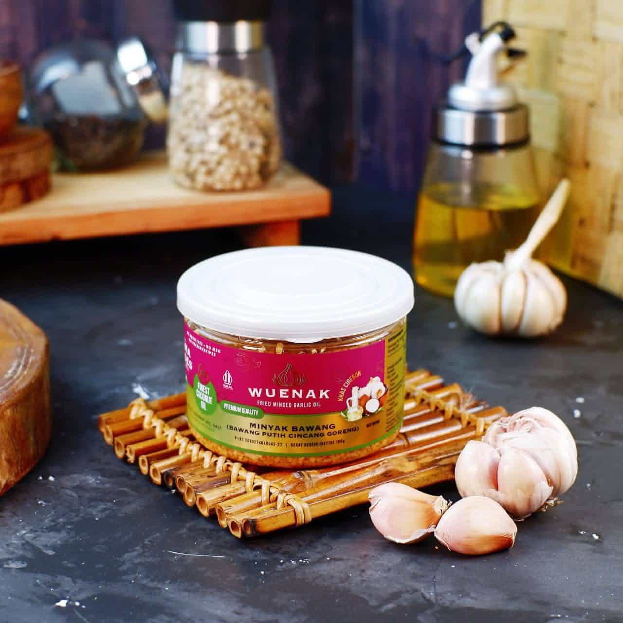 Dimulai pada tahun 2017, selama ini kami selalu berusaha menjaga kualitas produk kami sehingga hampir seluruh pelanggan kami suka dengan Bawang Goreng WUENAK. Produk telah dijual di 20 an modern retail market, sudah diekspor ke Australia, Taiwan, Macau, USA, SIngapore, Hong Kong dan dipakai di restoran Indonesia di Sydney dan digunakan sebagai condiment di Black Garlic Arirang Noodle dari Gaga Food. Kami menggunakan minyak kelapa yang lebih sehat, tidak pakai tepung, dan menggunakan teknik penirisan khusus sehingga menghasilkan bawang goreng yang sangat kering dan renyah. Bahan baku menggunakan Bawang Putih Kating yang lebih kuat aroma dan rasanya serta Bawang Sumenep dari wilayah sekitar Cirebon yang menghasilkan bawang goreng premium.