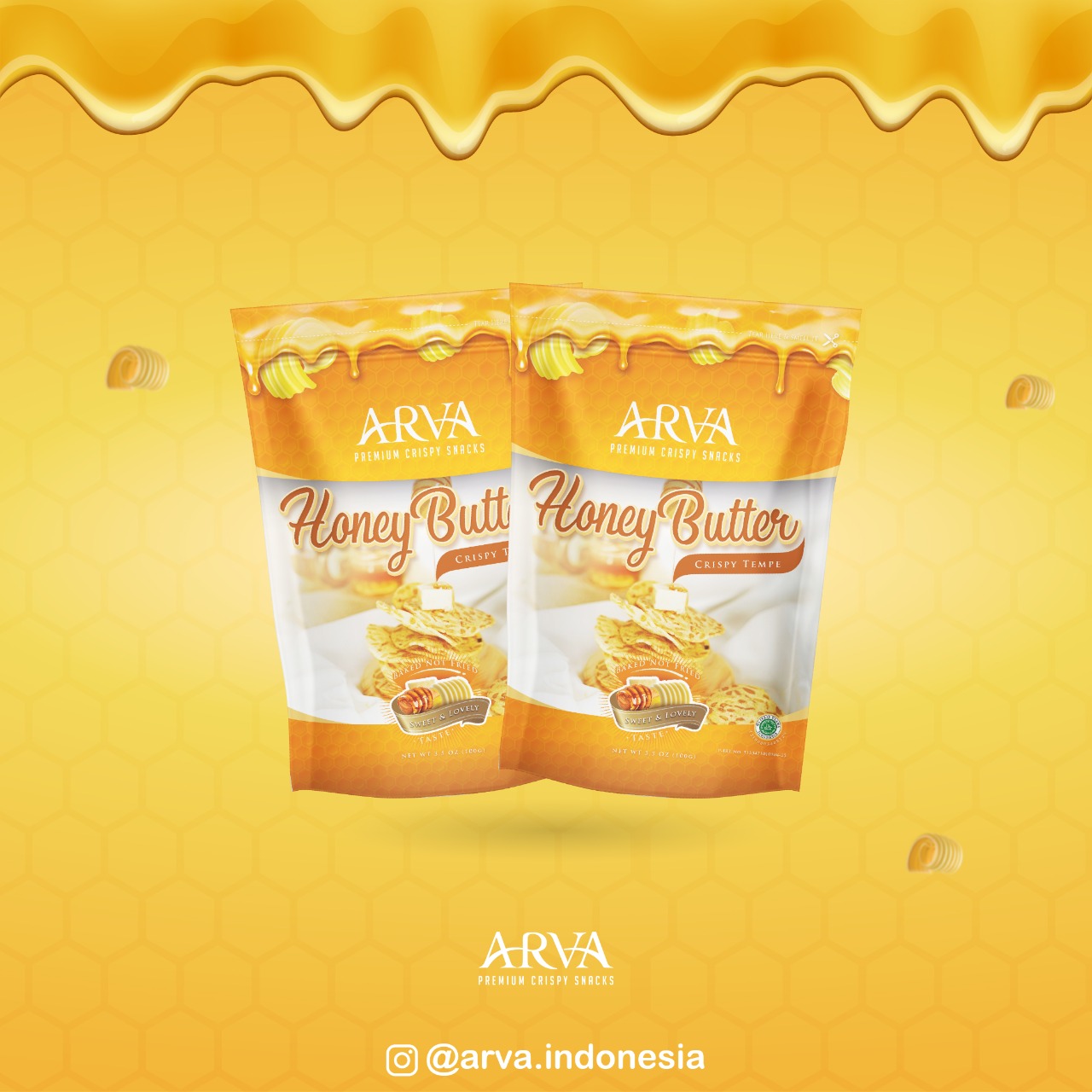 ARVA Crispy Snacks lahir dari resep tradisional khas Indonesia (Tempe) yang digabungkan dengan citarasa Internasional (Truffle) sehingga terciptalah aroma Truffle yang kuat dengan rasa klasik dari Tempe itu sendiri.