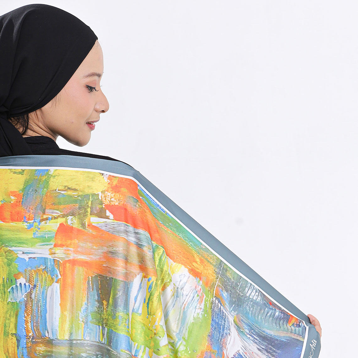 Makna Motif: Terinspirasi kampung warna warni di kota Malang yang dilihatnya nampak seperti rumah yang bersusun Proses melukis menggunakan solet dan pisau pipih yang didapat saat membeli bolu