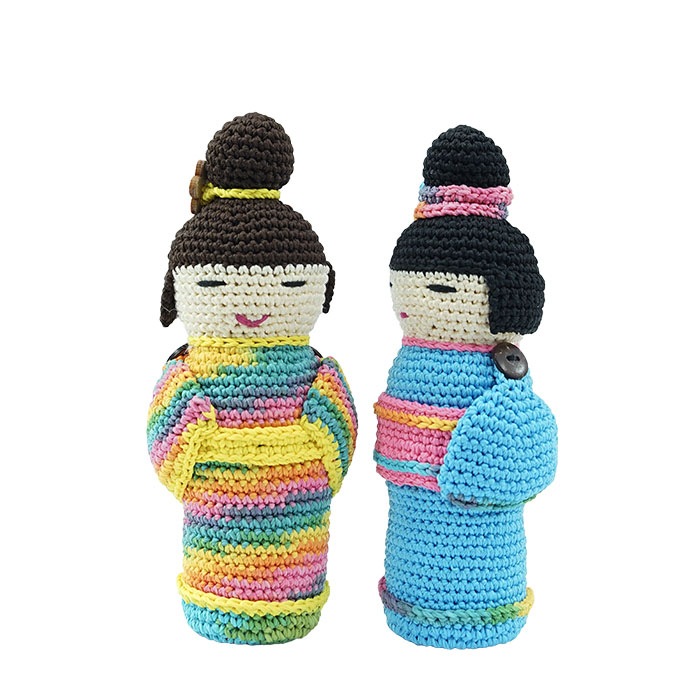 Boneka Rajut Tradisional Khas Jepang yang mempunyai keunikan tersendiri. Selain bentuk, pembuatannya juga membutuhkan konsentrasi penuh karena harus menghitung dan memahami pola untuk menjadi satu karakter boneka.